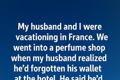 My husband and I were vacationing in France. We went into a perfume shop when my husband realized he’d forgotten…