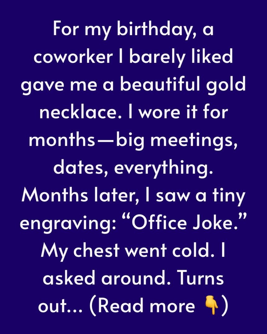 For my birthday, a coworker I barely got along with surprised me with a small box—inside was a gorgeous, minimal gold necklace. “Thought it matched your vibe,” she said. I was touched.