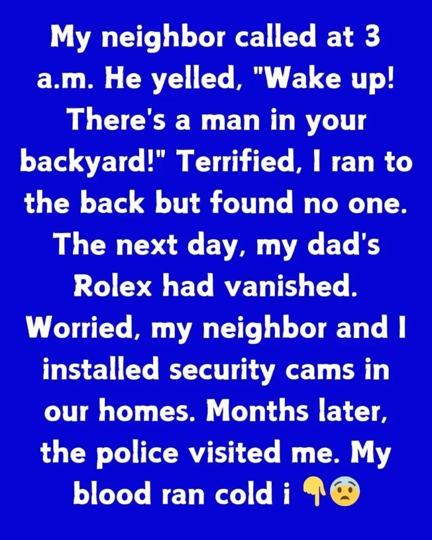 The next day, my dad’s Rolex had vanished. Worried, my neighbor and I installed security cams in our homes. Months later, the police visited me.