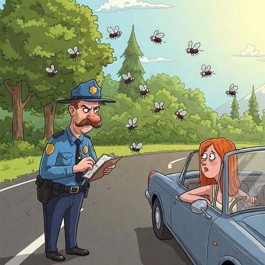 “Yeah, I didn’t think so,” replied the patrolman. “Yeah,” the motorist continued, “but there’s just no fooling those circle flies, is there?”