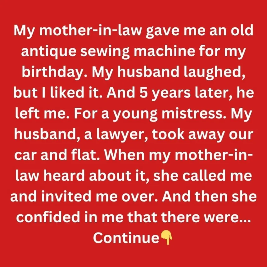 My mother-in-law gave me an old antique sewing machine for my birthday. My husband laughed, but I liked it. And 5 years later, he left me.