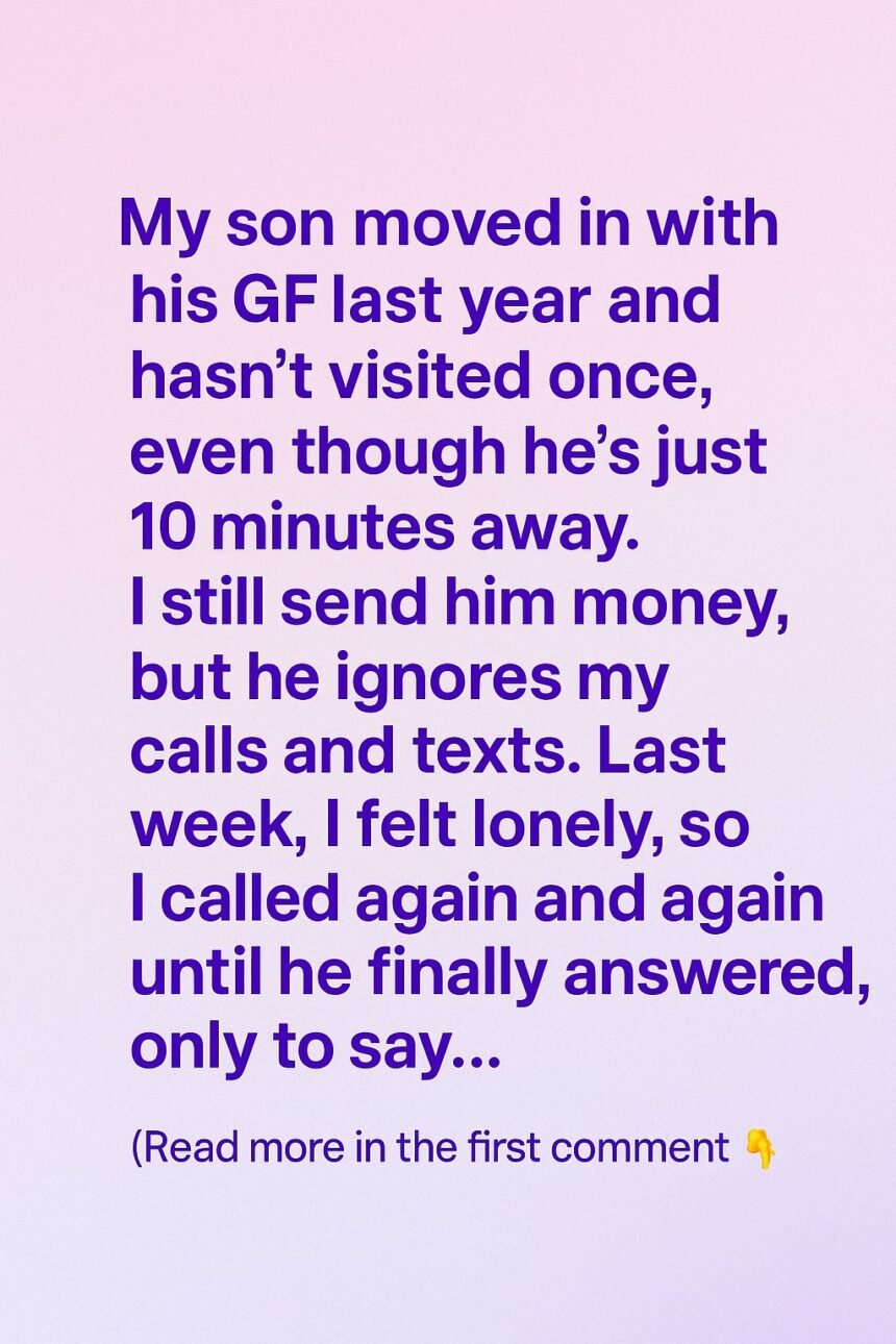 My son moved in with his girlfriend last year. Since then, even though they live just ten minutes away, he hasn’t visited me once. I kept hoping he would call or stop by, but the weeks turned into months, and the silence grew heavier with each passing day.I still sent him money to help out, thinking it might make things easier for him.