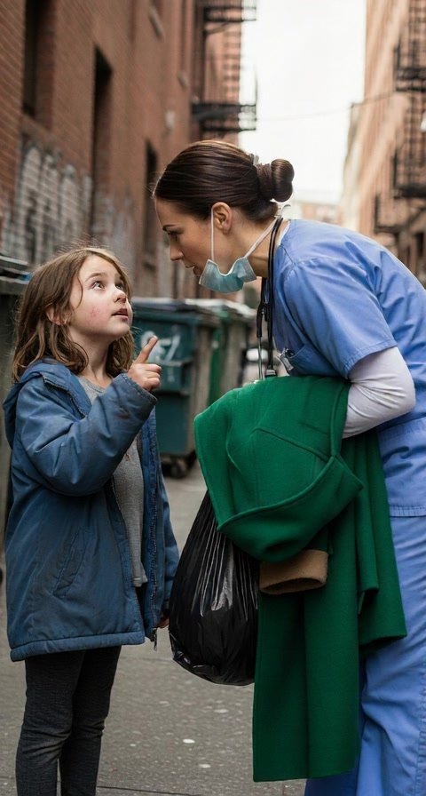 The woman’s tired expression hardened for a moment. “Your mother should be out working, not sending her child to dig through hospital refuse.” Then, her gaze softened as she looked at the girl’s determined face and thin jacket. “Fine.