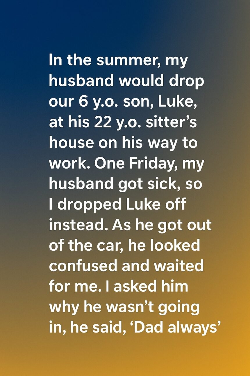 One Friday, however, my husband wasn’t feeling well, so I offered to take Luke instead. As we pulled up to the babysitter’s house, I smiled and encouraged him to hop out of the car like usual. But instead of running to the door with his usual excitement, Luke just stood there, looking puzzled.“Why aren’t you going in, sweetheart?” I asked gently.