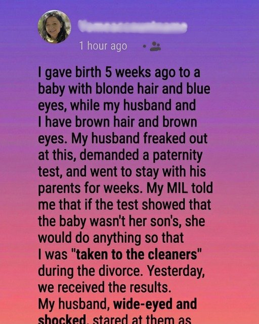 Five weeks after giving birth, I was still learning how to recognize my own reflection again. The sleepless nights blurred together, my body felt unfamiliar, and yet every time I looked at my baby, something inside me felt undeniably whole. She had light hair that caught the sun and eyes the color of a clear morning sky—features that surprised everyone, including me. Genetics, I thought, remembering old family photos, distant relatives, forgotten traits. But my husband didn’t see history or possibility. He saw doubt. And doubt arrived loudly, packing a bag, demanding proof, and leaving our home quieter than it had ever been.