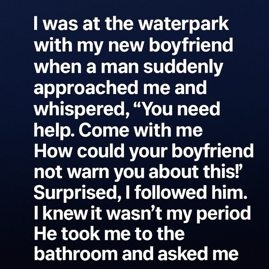 I was at the waterpark with my new boyfriend when a man suddenly approached me and whispered, “You need help. Come with me. How could your boyfriend not warn you about this!” Surprised, I followed him.