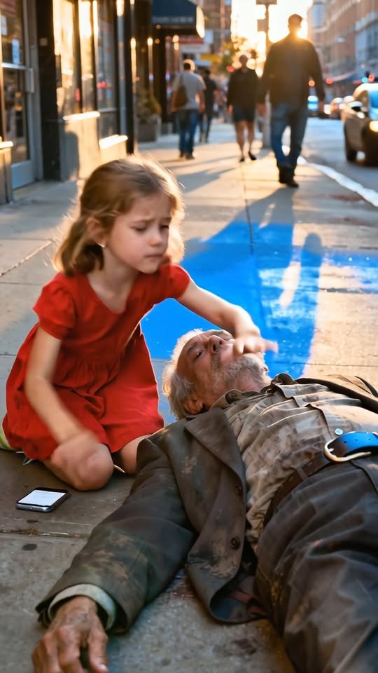 Without hesitation, she ran—her small legs flying, her brilliant blue eyes wide with alarm. She knelt beside him, her small hand pressing gently against his chest the way her mother, a nurse, had taught her. The man’s shirt was damp with sweat, and his face was unnervingly pale.