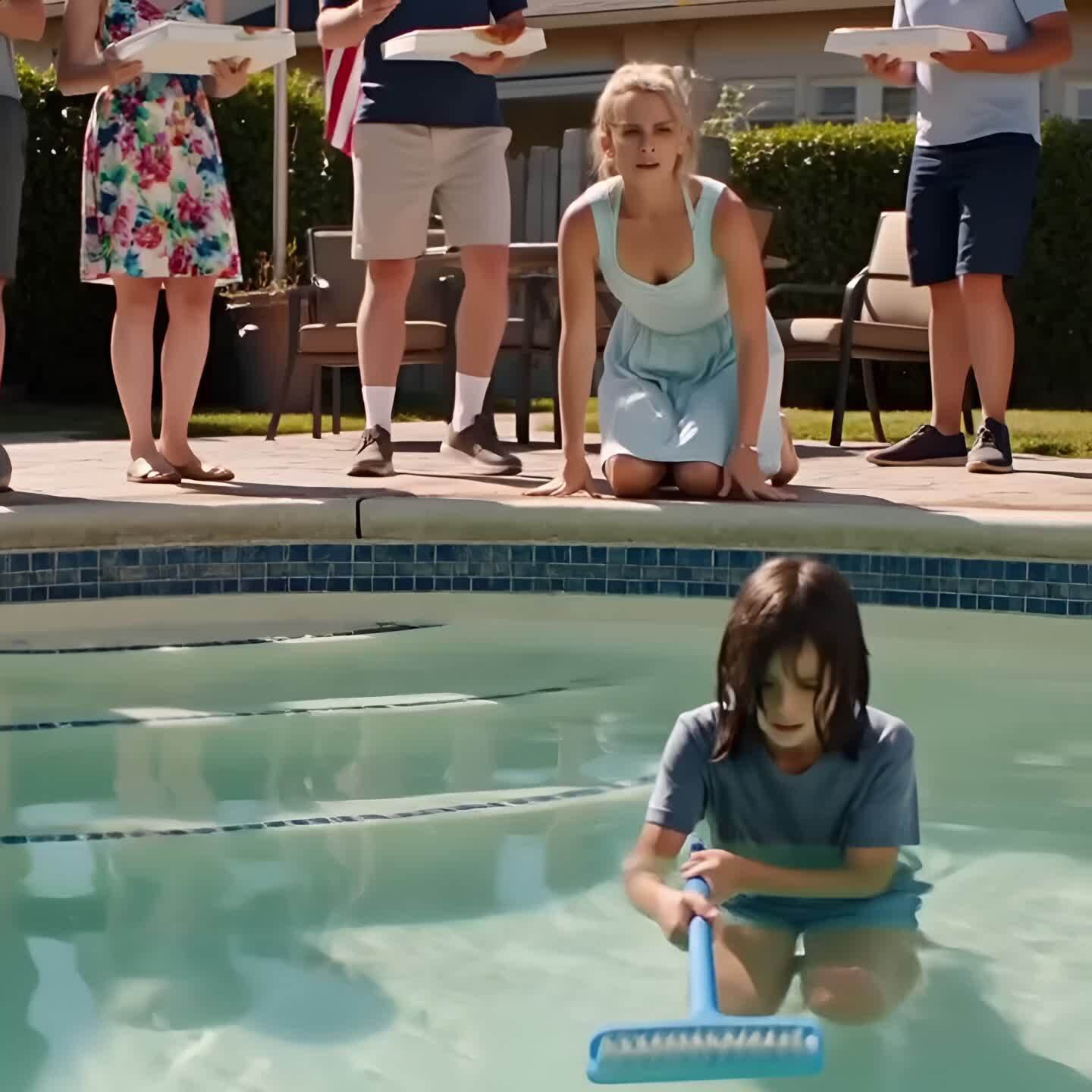 That’s when I heard it—a scraping sound, hard and repetitive, and something else: strangled breathing, like someone was forcing themselves to keep going. The sounds were coming from the backyard, near the family pool.