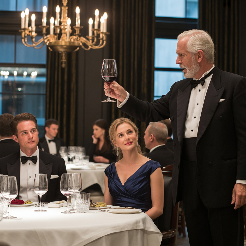 When dinner was served, Dominic rose for a toast. The room quieted instantly.