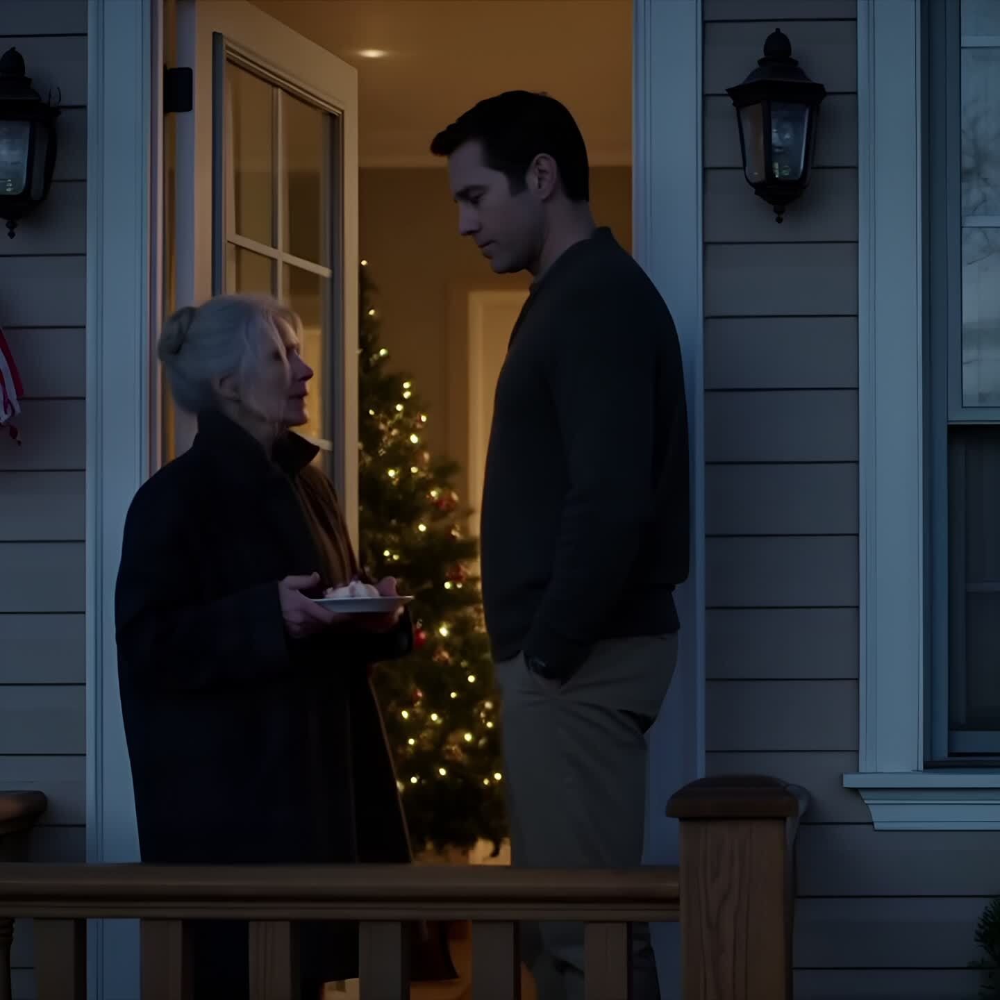 When the taxi stopped in front of Ethan’s house, I froze. The entire facade glowed with Christmas lights, and through the large windows I could see many guests—more than I had expected. I paid the driver and carefully carried the pudding dish and gift bag to the door. I rang the bell, nervously smoothing the gray hair I had styled at the salon that morning.
