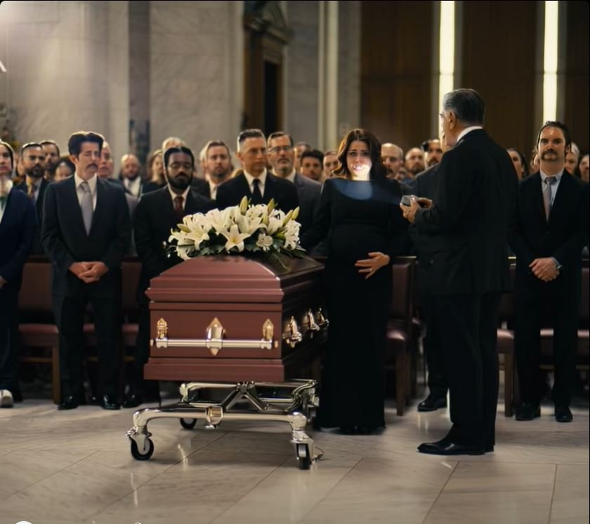 Now the lilies blurred through my tears as I stood beside the polished casket, one trembling hand resting over my five-month pregnancy while the other clutched the edge of the pew. Not for comfort—for balance. Because grief wasn’t a soft thing.