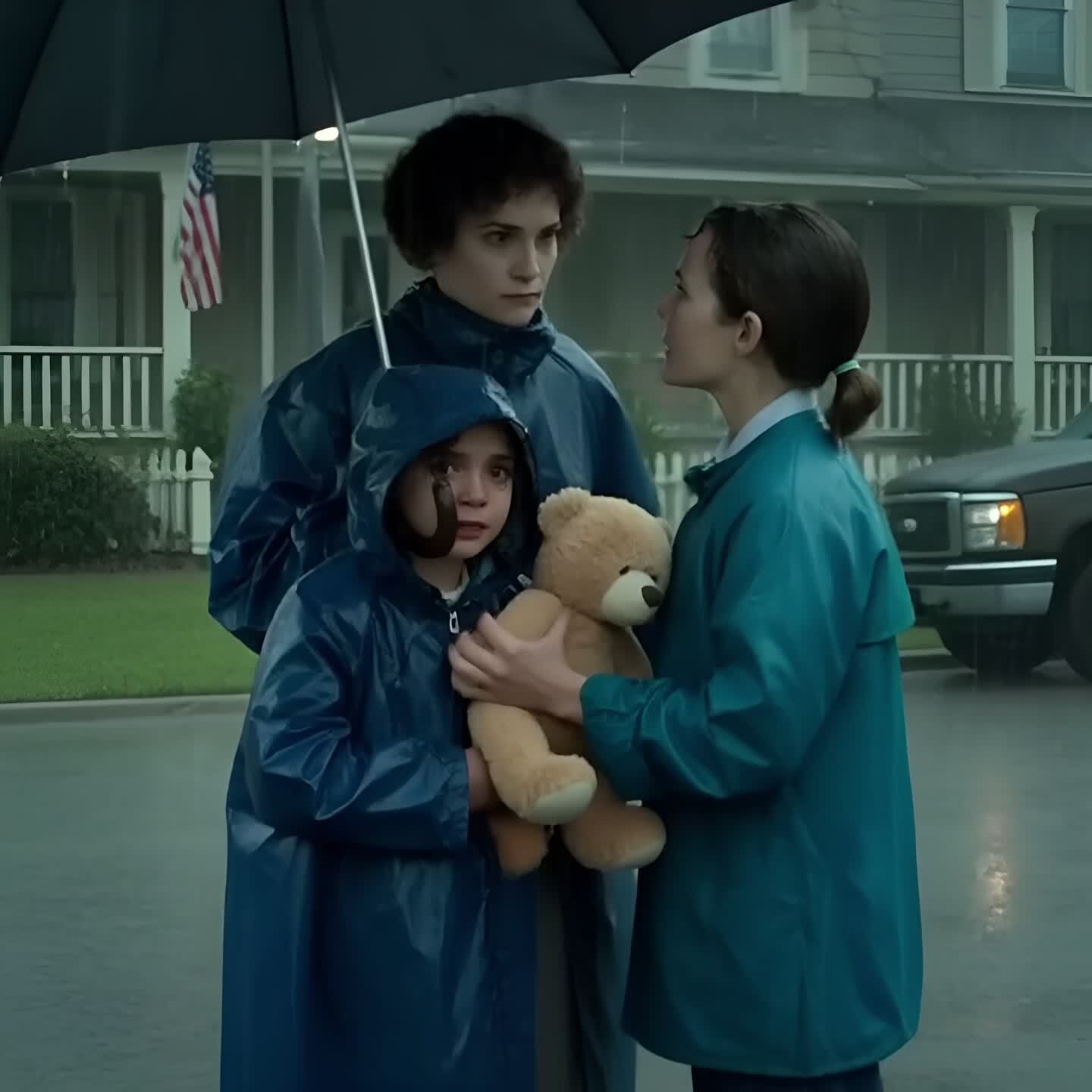 Patterson said, her voice tight with concern. “She’s absolutely drenched and crying her eyes out. I think something happened with your parents.”