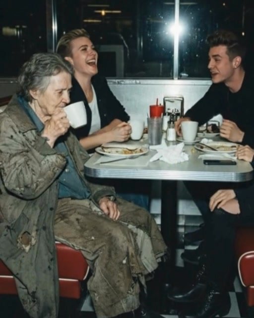 Humiliated, the old woman stood up slowly and whispered to the hostess, “It’s okay. I’ll go. I’ve got some change for a coffee at the gas station.”