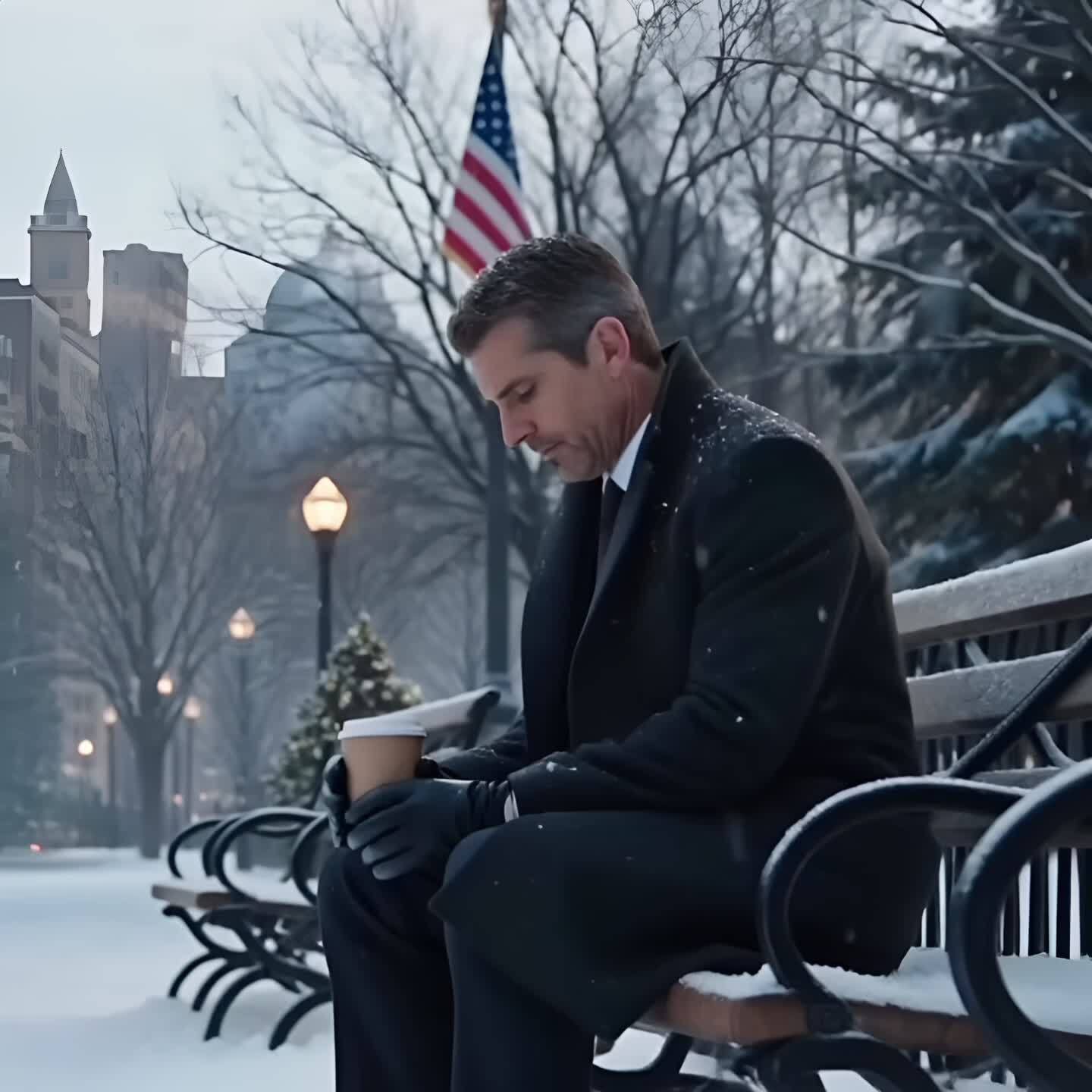Callum Reed sat alone on a cold iron bench, his coat buttoned to the top, a gray scarf wound neatly around his neck. The leather gloves on his hands did not stop the cold from seeping in. Beside him on the bench, a paper coffee cup sat untouched. The steam had long since faded.