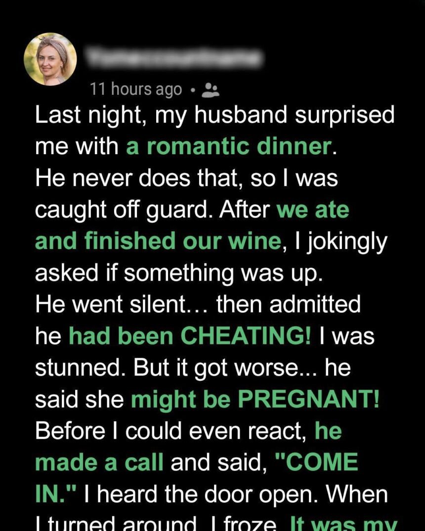 Before I could even process it, he delivered another blow: she was pregnant. With twins. The dinner, the effort, the forced smiles—it all became clear.