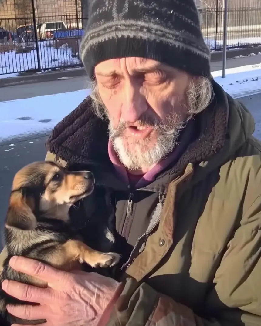 He was huddled under a threadbare blanket, his face red from the biting cold. Beside him sat a small, scruffy dog, trembling as it pressed against his side.