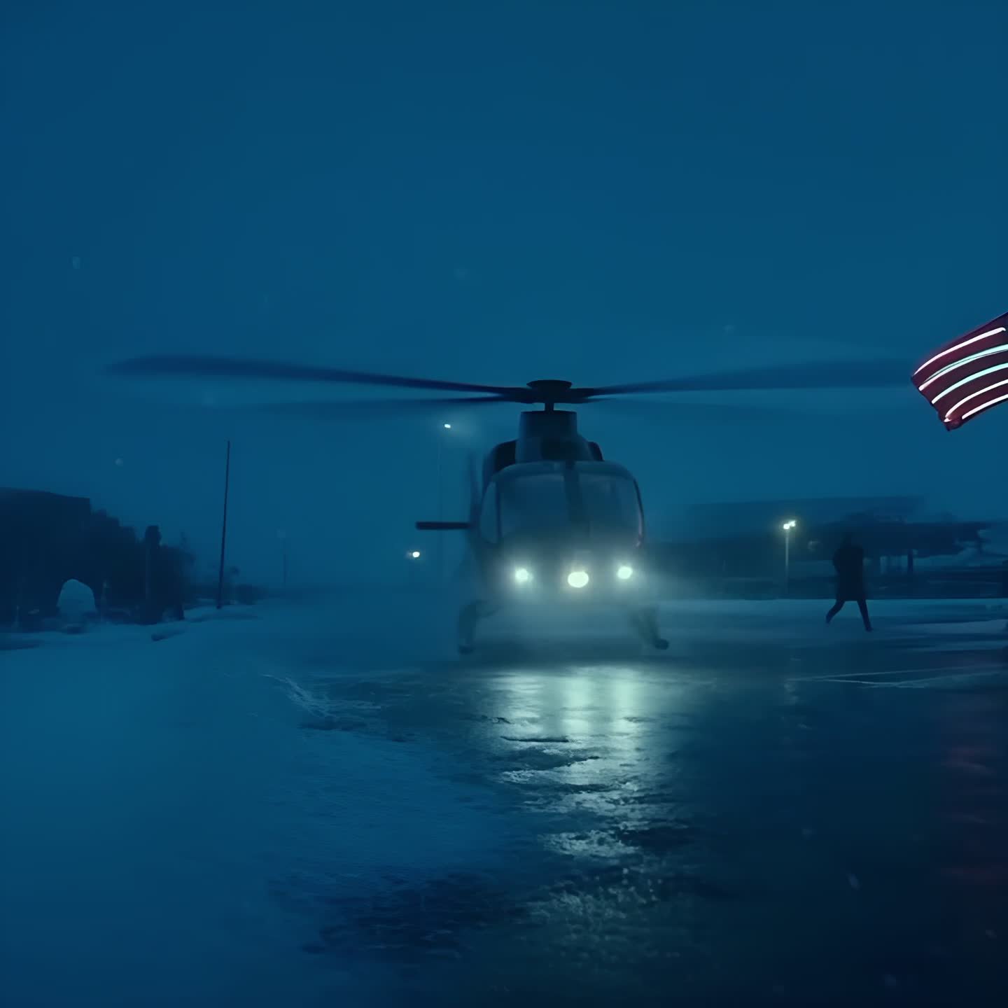 I scrambled off the bed, pulling the curtain aside. The parking lot was gone. It was replaced by an impossible, blinding white light. The snow wasn’t falling anymore; it was swirling in a violent horizontal vortex. The sound was deafening now, a physical weight pressing against the motel. A helicopter—a massive, sleek, black helicopter—was settling onto the asphalt, its landing skids barely ten yards from my door. The rotor wash was a hurricane, tearing at the motel’s loose shingles. The night clerk, the same kid who had checked me in, was standing in the open doorway of the office, his jaw hanging open, holding his phone up to record, completely stunned.