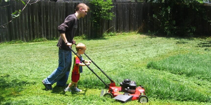 One blazing afternoon in July, I was up on a ladder fixing a leaky gutter for a client next door when I spotted her in her yard, wrestling with an old push mower.