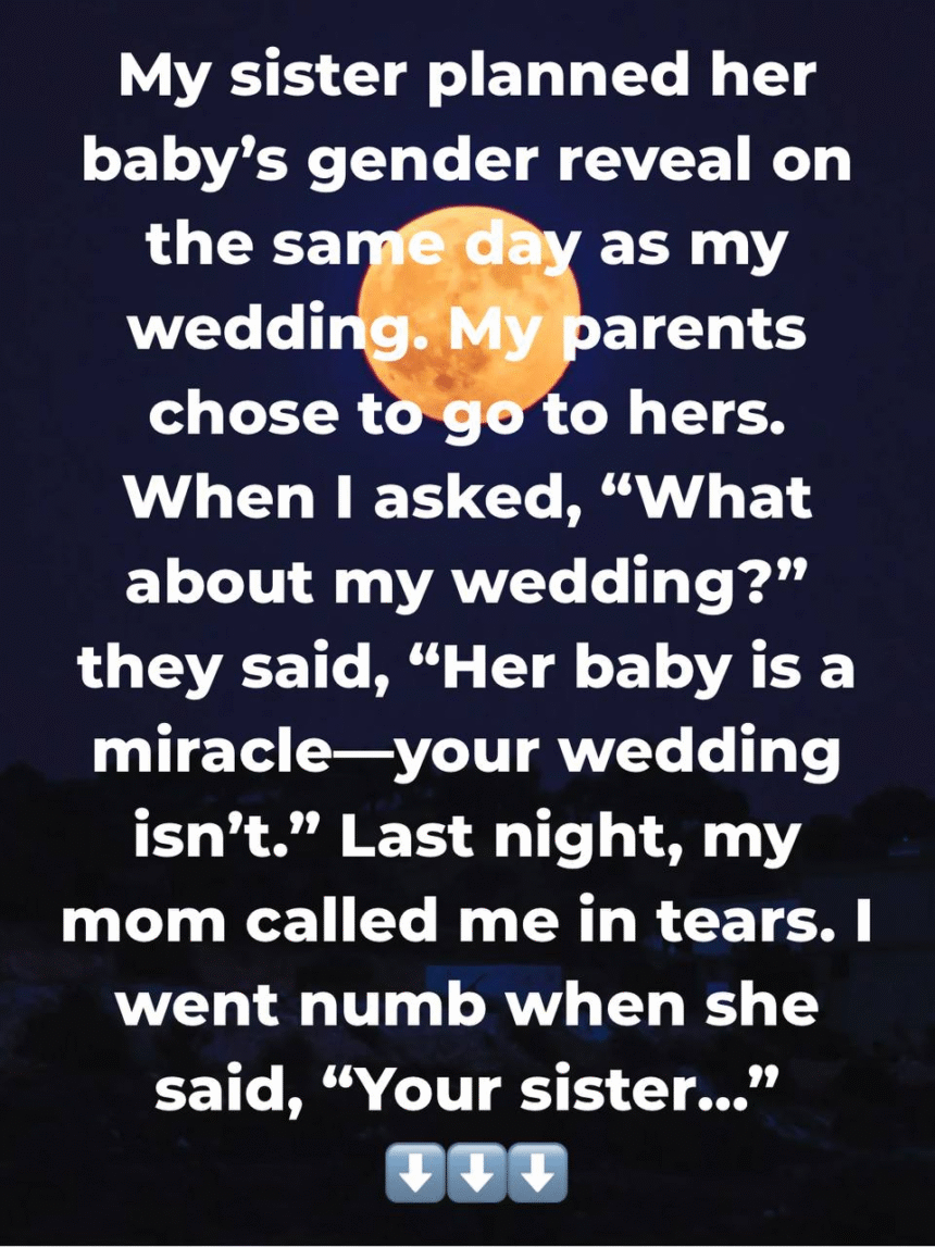 When I asked why, my mom said something that honestly still rings in my ears: “Her baby is a miracle. Your wedding isn’t.” That broke me. No explanation.