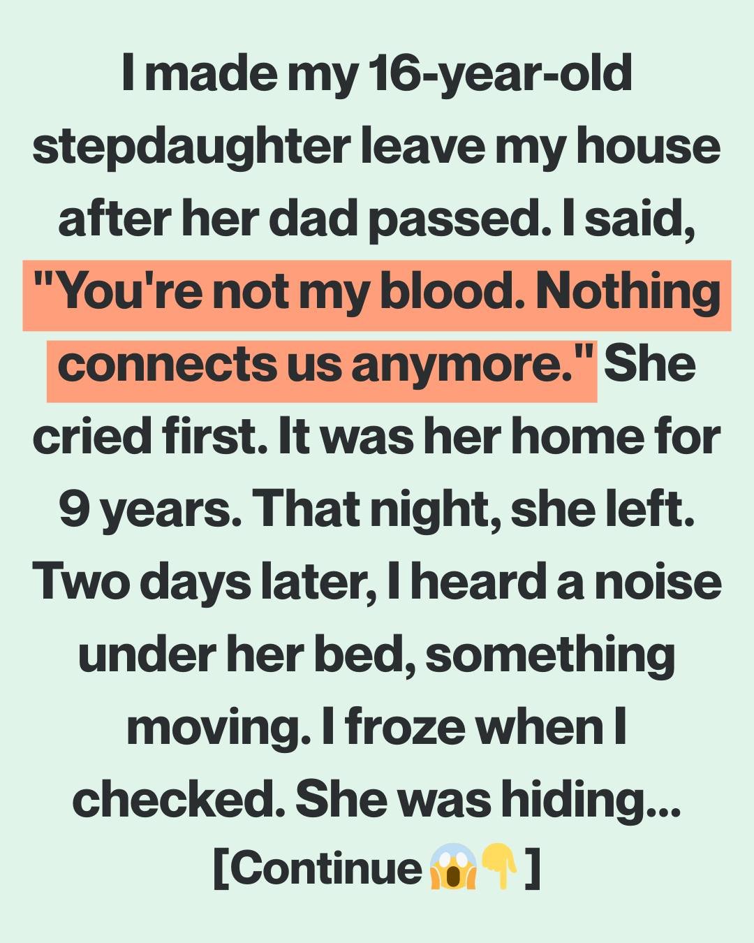 I told myself it was practical, even logical. The house had been in my family for generations. I’d inherited it long before I married her dad, and after he passed, I convinced myself there was no reason for her to stay. Grief had made me cold, sharp, and cruel in ways I didn’t want to admit.