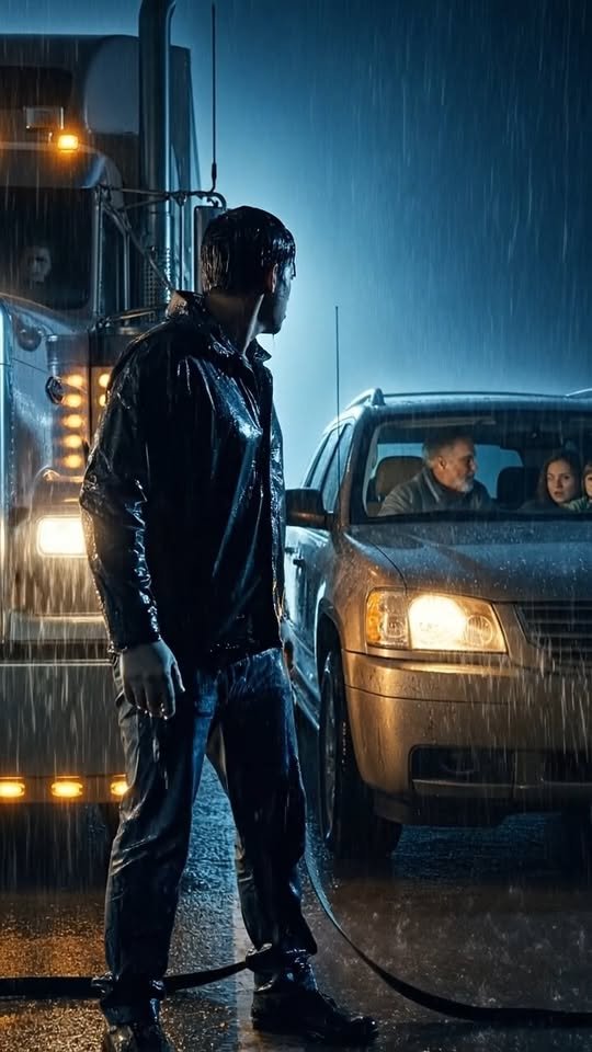 I was a tired truck driver in a storm when I stopped to help a stranded family.