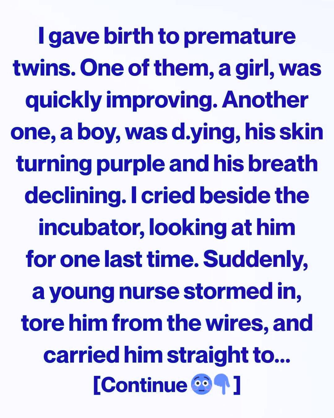 Everything blurred together—urgent voices, rapid footsteps, hands moving faster than my mind could follow. Someone told me to breathe, but my body was shaking too hard to listen. I never got to hold them. Before I could register their faces, they were already gone—lifted away into a world of wires, alarms, and sterile plastic.