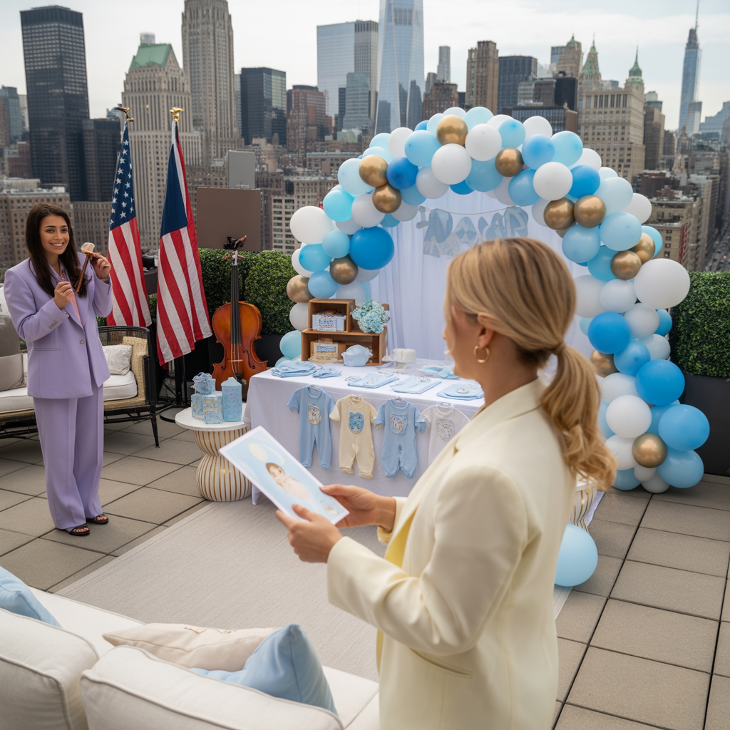 He stood in front of a balloon wall the size of a garage door, holding a mocktail, grinning like he’d invented fatherhood.