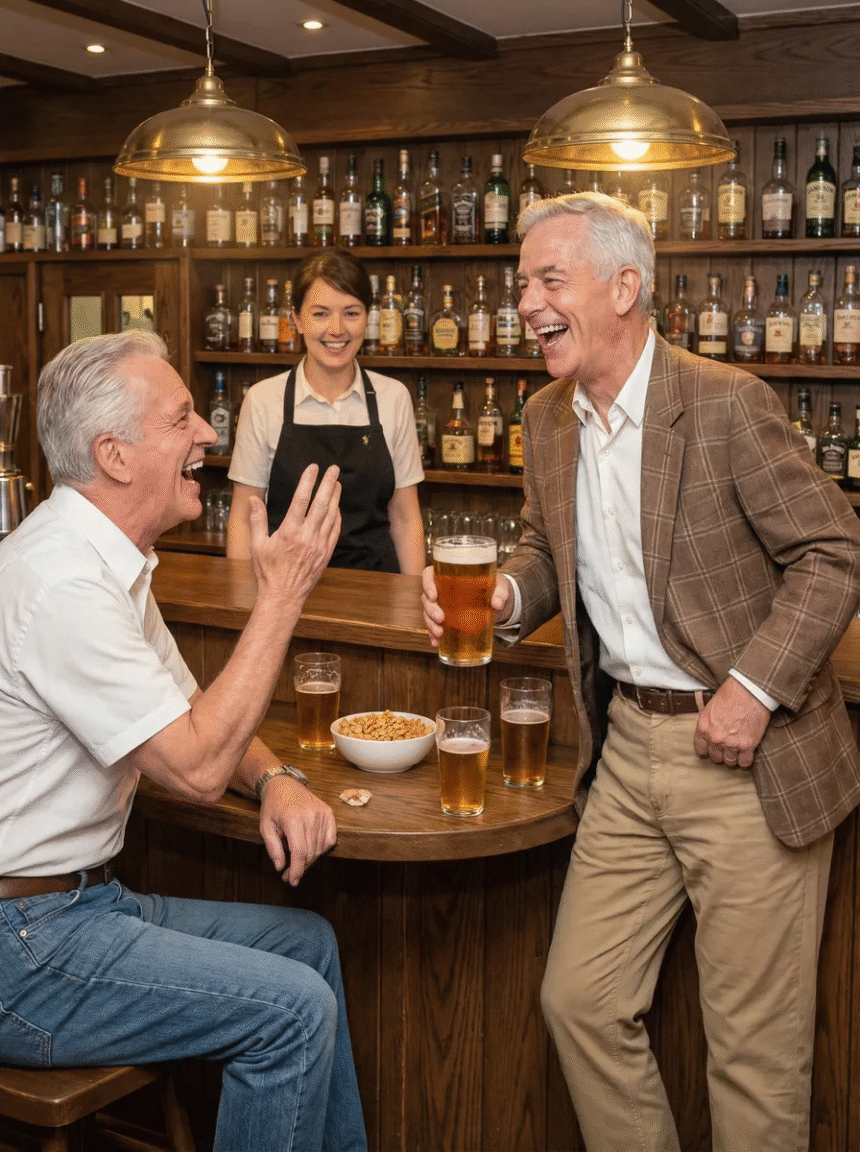 So, two old school pals, Jim and Robert, make contact with each other on facebook. They arrange to meet up for a wee festive drink in the Horseshoe bar. They have a nice long talk trying to fill in the gap of those years by telling each other about their lives.