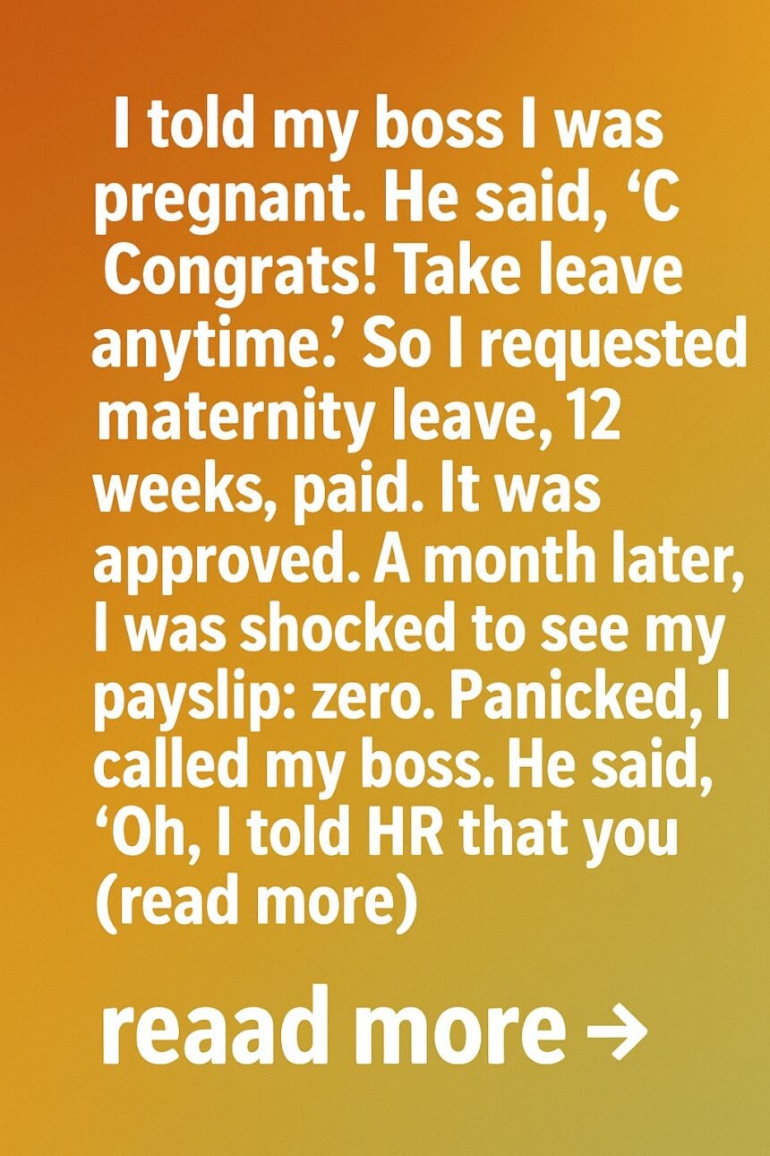 “Why would you think that? I clearly applied for paid maternity leave, and you approved it!” My voice trembled with frustration. He chuckled nervously.