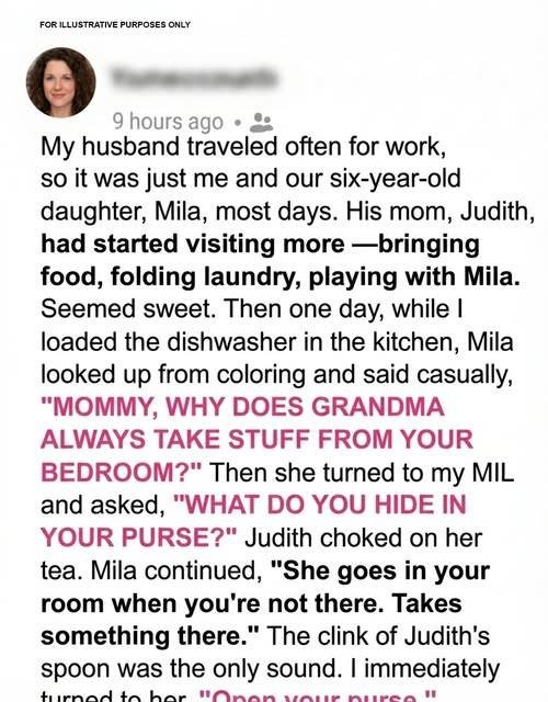 When my 6-year-old daughter asked her grandmother what she was hiding in her purse, I almost laughed. Kids blurt out awkward questions all the time, and I expected to brush them off. But then she said Grandma had been sneaking into my bedroom when I wasn’t home. What I found inside that purse didn’t just unsettle me; it quietly tore my marriage apart and forced me to see my family, and myself, with painful clarity.