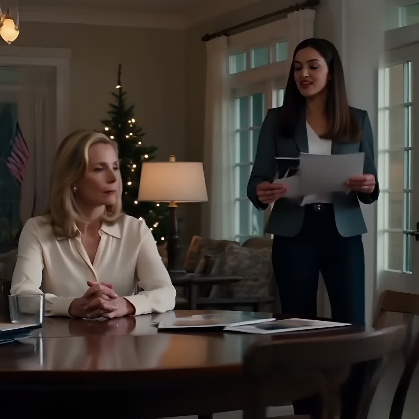 There was a brief silence. Then her tone softened into something rehearsed.
