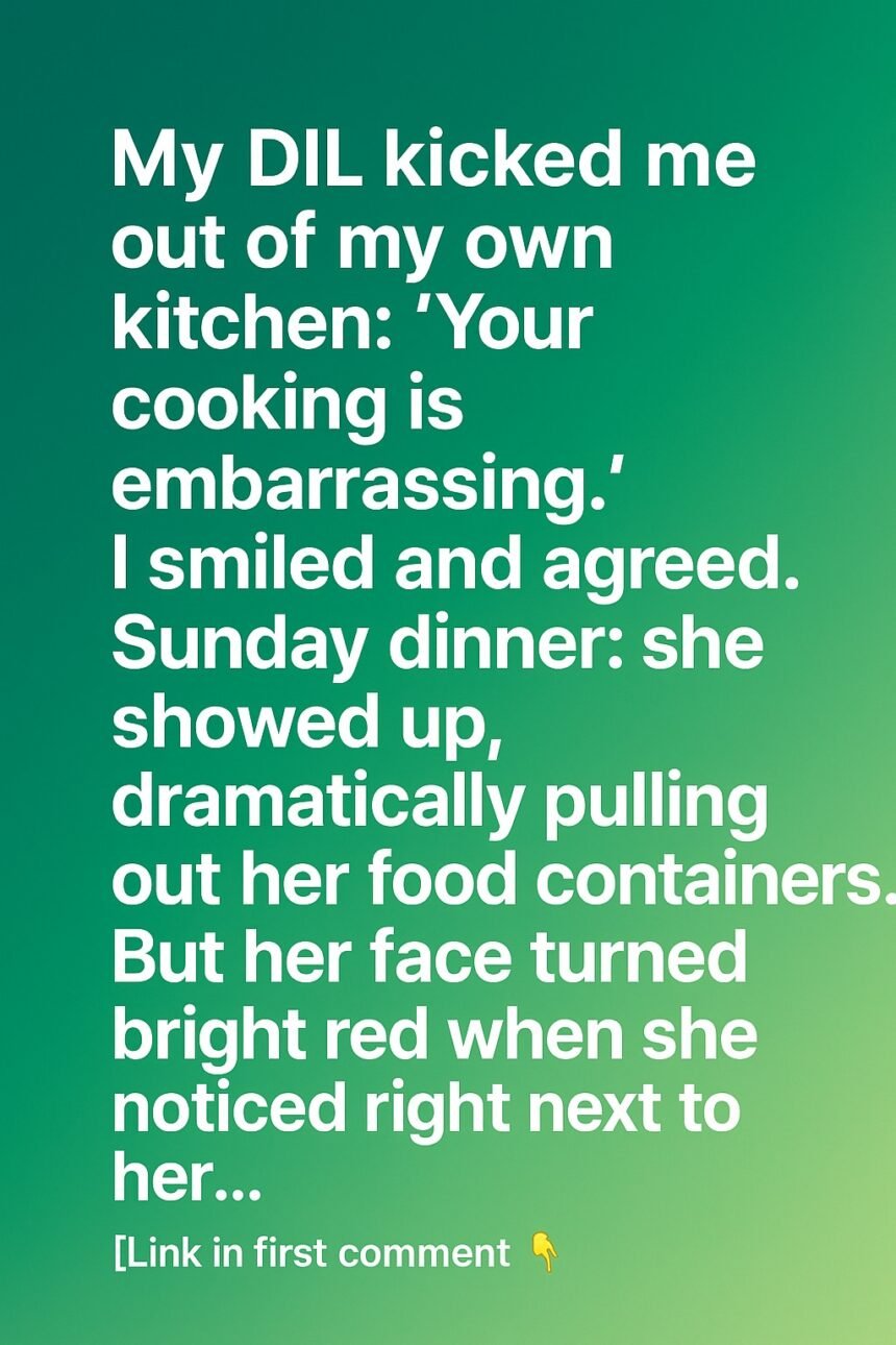 “Your cooking is embarrassing,” my daughter-in-law, Hannah, told me one Sunday morning as she insisted on taking over our family dinners. I simply smiled and agreed, even though those Sunday meals had been my special tradition for years. Deep inside, I wasn’t upset — I knew there was more to a family dinner than just food, and I had a plan to gently remind her of that.