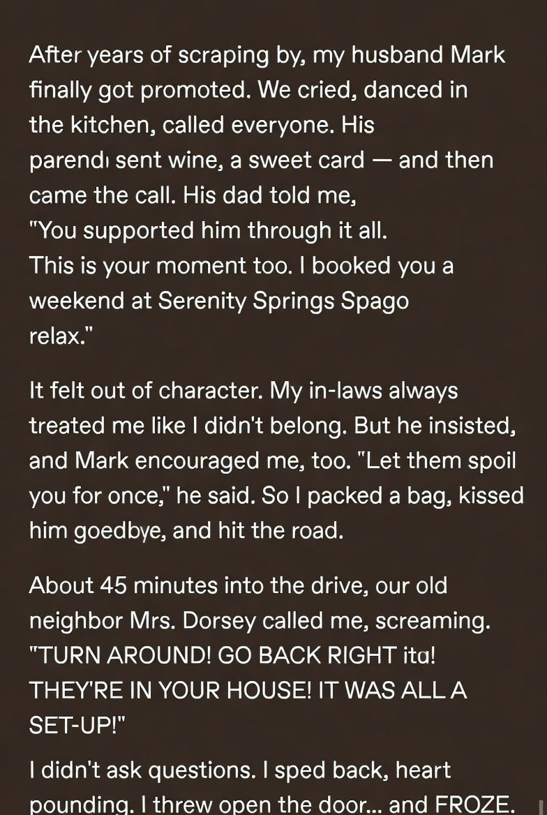 For three years, my in-laws barely tolerated me. I wasn’t “their kind” — no country clubs or trust funds, just a teacher who married their precious son, Mark. Then one day, my father-in-law, Rob, called with an unexpected offer: an all-expenses-paid weekend at a luxury spa.