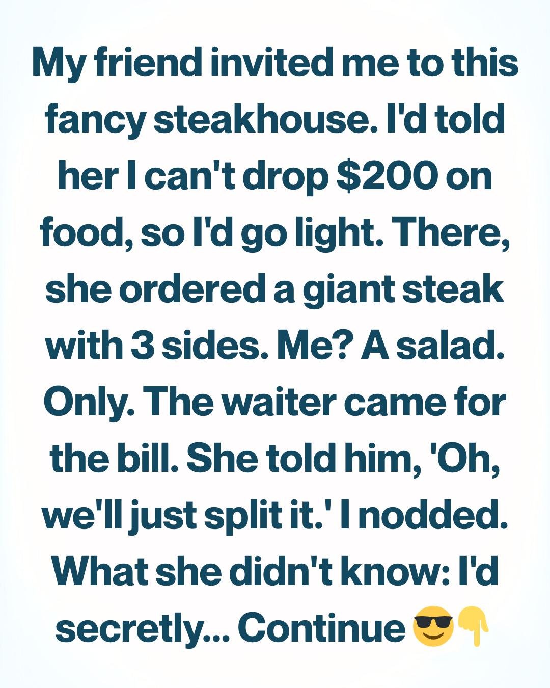My friend invited me to a fancy steakhouse downtown—the kind with dim lighting, heavy silverware, and menus that don’t list prices because they assume you’re not afraid of them.