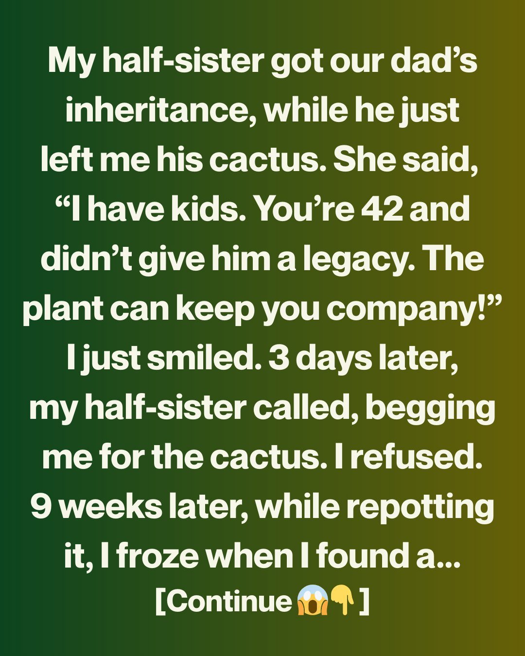 I didn’t argue. I didn’t cry in front of her either. I just nodded, took the cactus, and went home.