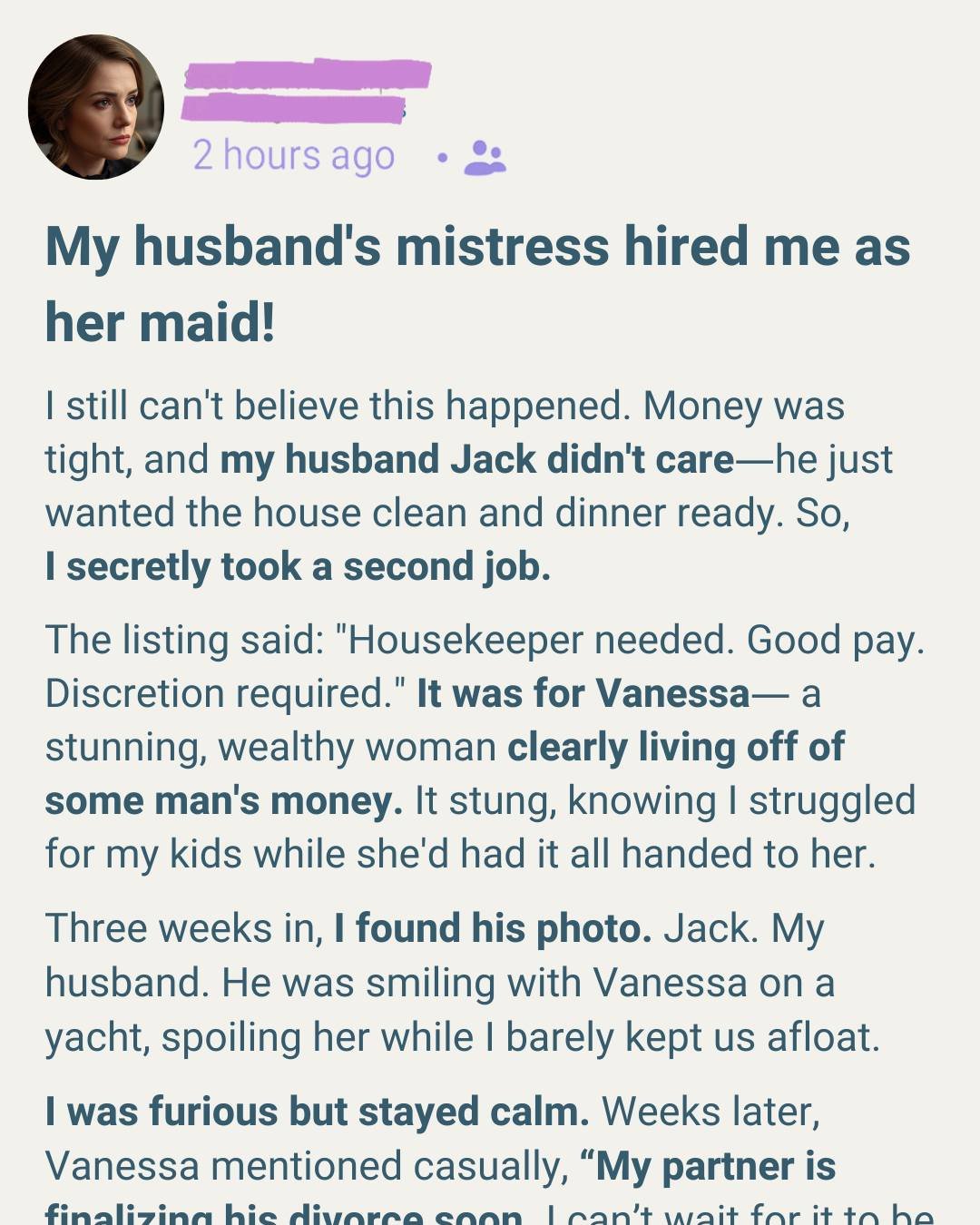 Vanessa didn’t know who I was. To her, I was just the maid. And that gave me power.