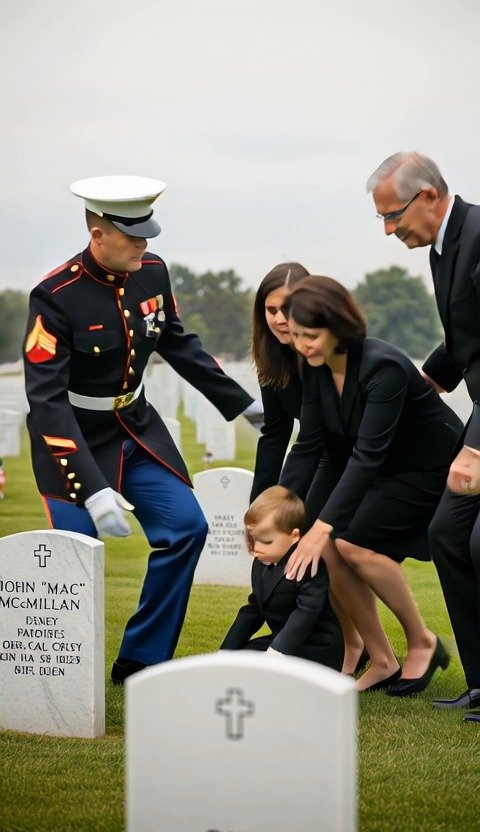 While visiting his grave, my son touched a strange symbol on the headstone. Suddenly, a man in a full military dress uniform appeared behind us, saluted the grave, and said, “Ma’am, the code is active. We have to go now.” What he told me next about my husband’s real job made my in-laws’ world crumble…