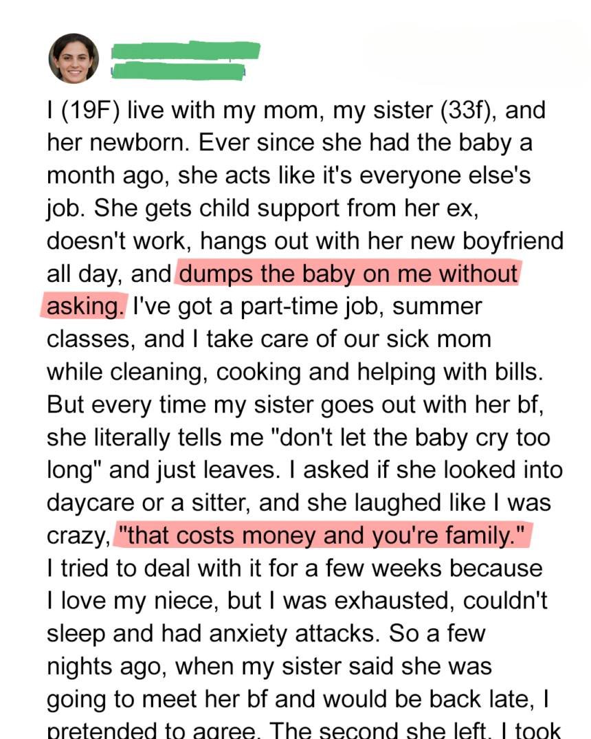 Two weeks later, she’s more present, respects my boundaries, and actually spends time with her daughter. I still help sometimes but now I’m just Rosie’s aunt, not her stand-in parent. And that’s exactly how it should be.