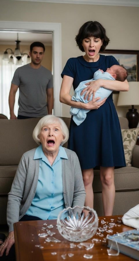 Martha was on the ground, her face flushed with pain and embarrassment. The flowers she’d been carrying were scattered across the hardwood floor, water spreading in a dark stain. Everly stood over her, holding our grandson, her face twisted with disgust.