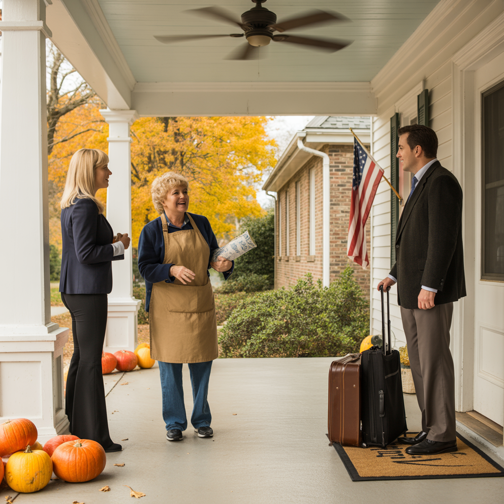 When I walked around to the front of my modest two-story home, I found my son standing on my porch with his wife, Lennox, but they weren’t carrying the usual signs of a casual visit. Lennox had two large suitcases beside her, and Terrence was pulling more bags from the trunk.