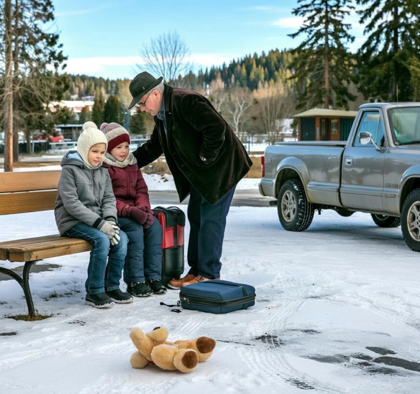 Three battered suitcases sat at his feet—hard-shell luggage with scraped corners and zippers that barely held, the kind you pick up at discount stores when you’re young and broke and optimistic. My six-year-old grandson Toby was pressed against Leo’s side like he was trying to disappear into his father’s ribs, clutching a grimy teddy bear with one ear worn thin from years of comfort-seeking. The bear’s name was Mr.