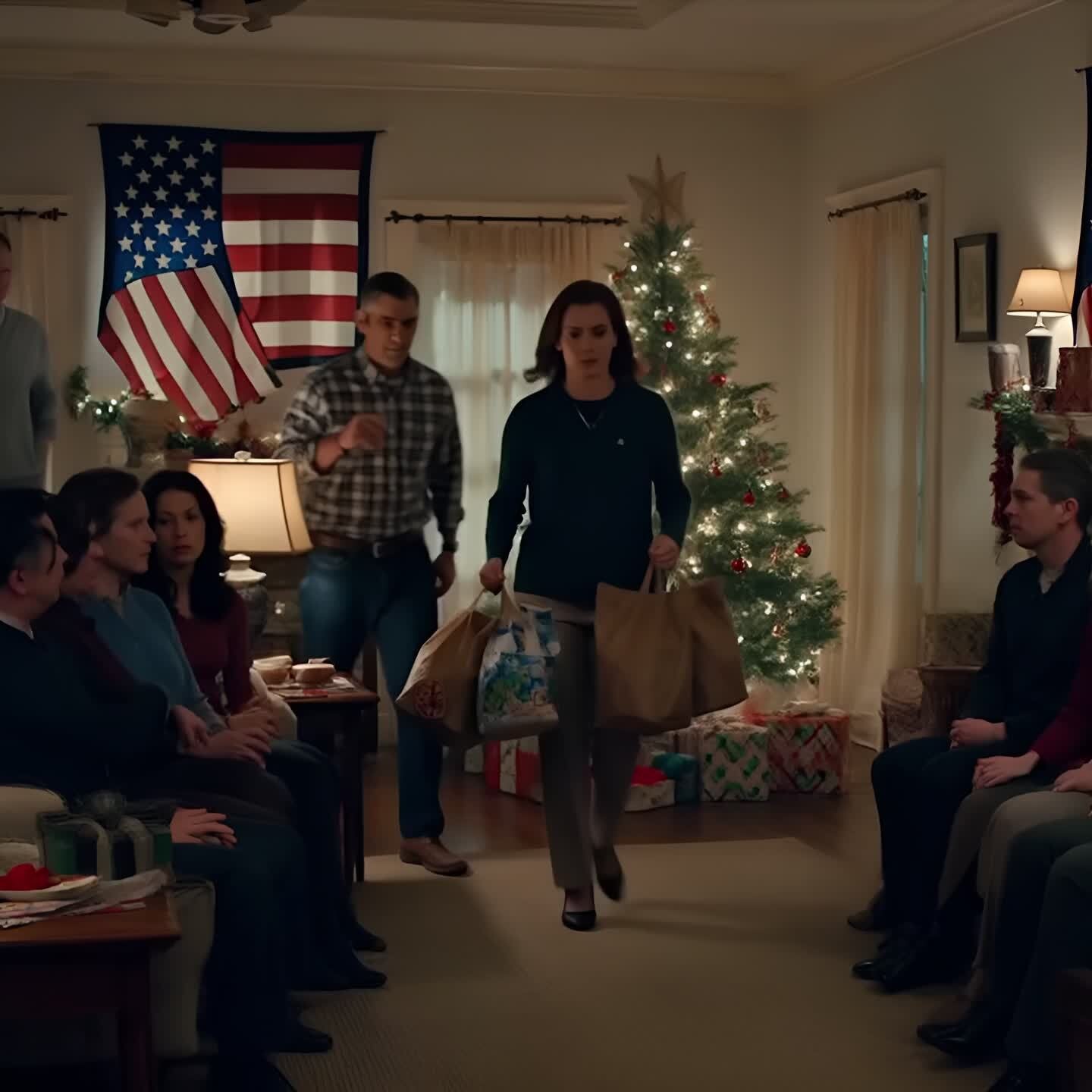 My husband’s voice cracked like a whip across the living room. My family, all 30 of them, froze in absolute silence. 30 pairs of eyes pinned on me. The New Year’s Eve music was still playing softly in the background, but everyone had stopped talking, stopped laughing, stopped breathing. My daughter-in-law, Vanessa, even dropped her champagne flute, the liquids soaking the tablecloth I had ironed myself that very morning. I stood in the entryway of my own home, grocery bags still dangling from my arms. I had just gotten back from a last-minute emergency run because we were short on ice, wine, and the jumbo shrimp his sister Patricia had specifically requested.