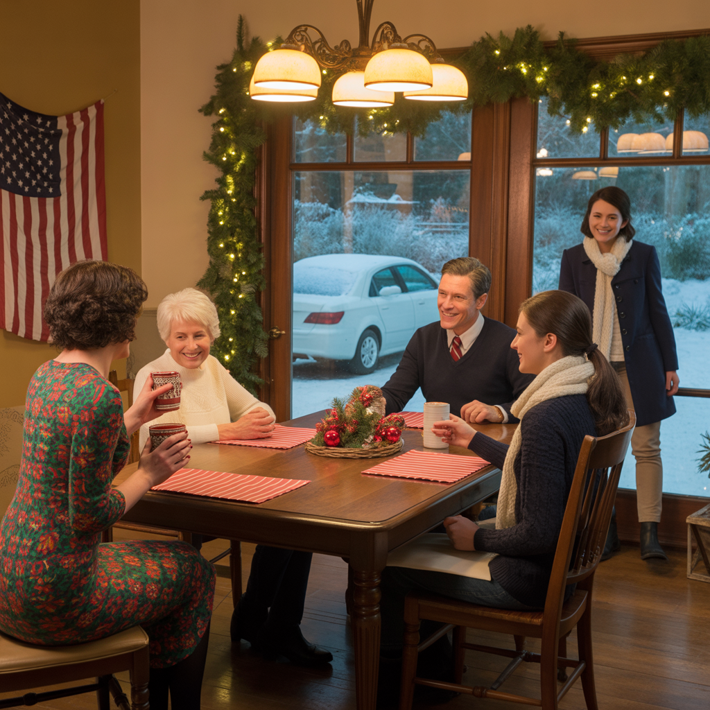 I stepped out into the cold air, closing the door gently behind me. The decorations on the porch swayed in the wind, still trying to sell the image of a perfect Christmas.