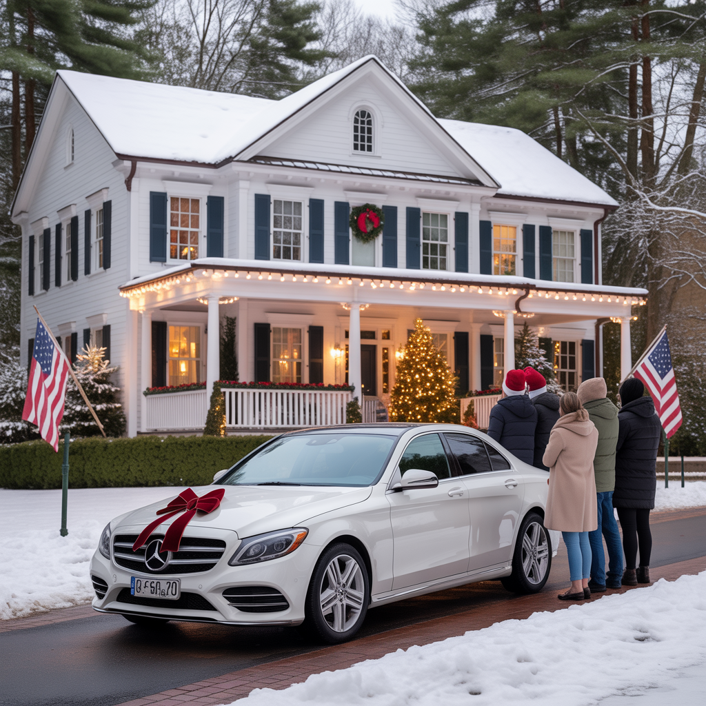 Madison ran to the window and screamed. In the driveway sat a brand-new Mercedes, white with a red bow on the hood like in a commercial.