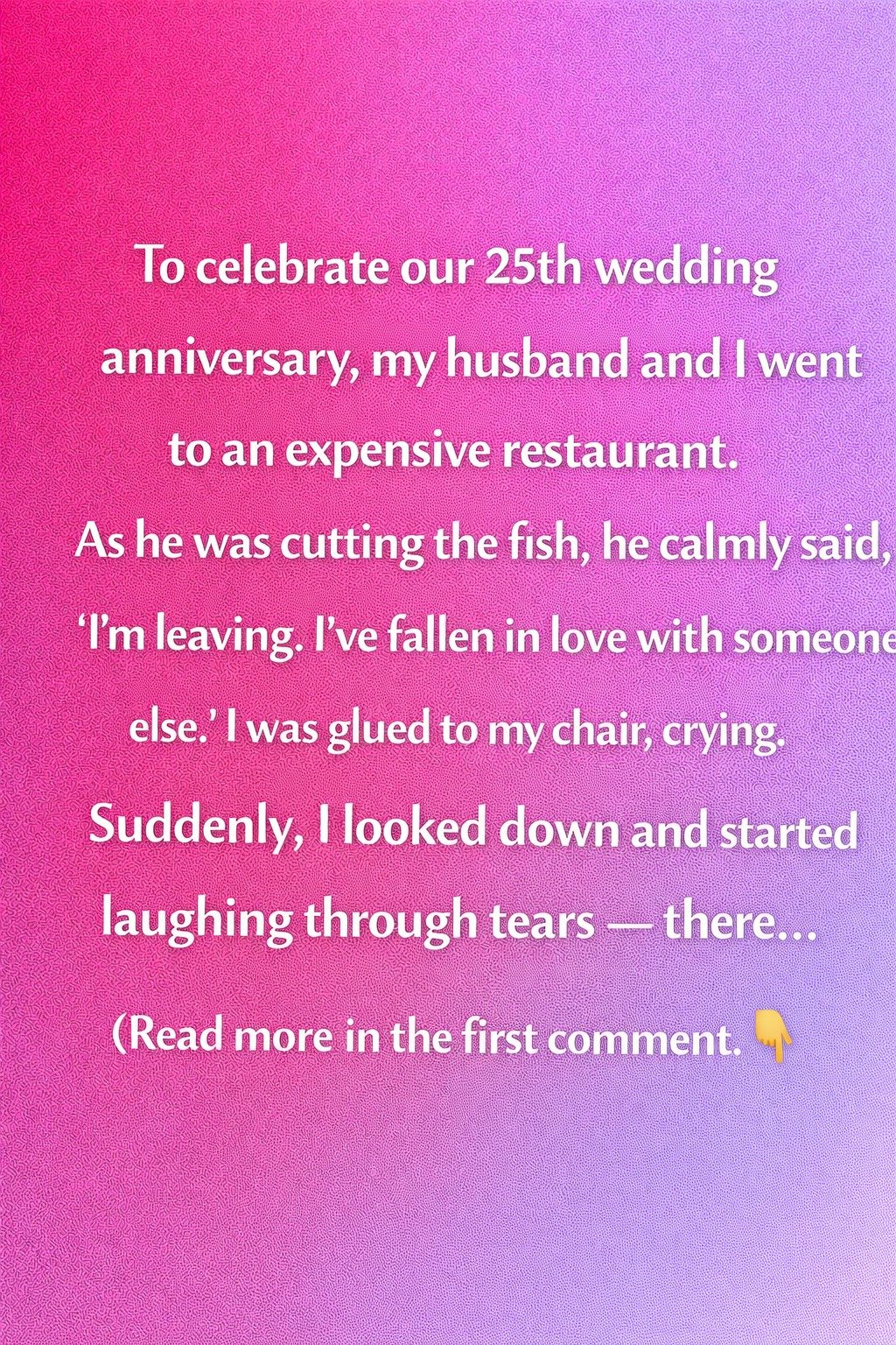 To celebrate our 25th wedding anniversary, my husband and I went to an expensive restaurant. It was the kind of place we had always saved for special occasions, with soft lighting, white tablecloths, and servers who spoke in calm, practiced voices. I remember thinking how strange it felt to mark such a long journey with something so quiet and polished. We talked about ordinary things—work, travel, memories from when the kids were small—and I let myself believe we were simply two people honoring the life we had built together. When the food arrived, I smiled at him across the table, unaware that the evening was about to split my life into a before and an after.