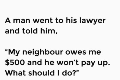 A man went to his lawyer and told him, “My neighbour owes me $500 and he won’t pay up. What…