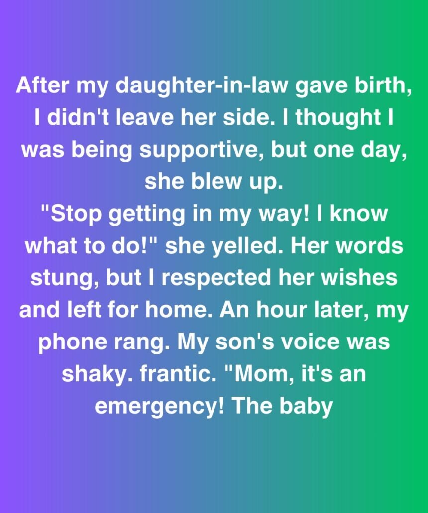 After my daughter-in-law gave birth, I didn’t leave her side. I thought I was being supportive, but one day, she blew up. “Stop getting in my way!