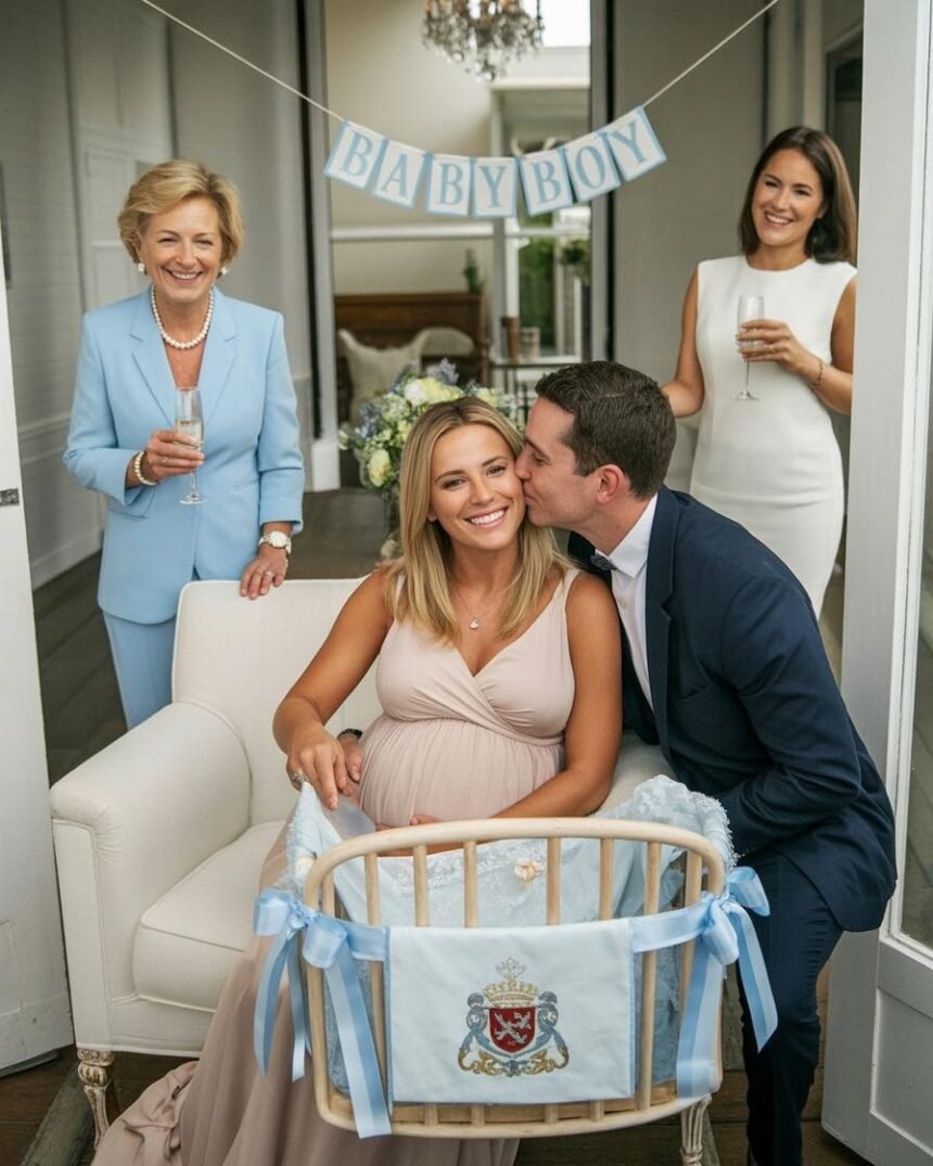 But the star of the show wasn’t me. It was the woman sitting in the center of the room in a pale blue dress that clung lovingly to her eight-month belly. Her blond hair fell in soft waves, makeup flawless and glowing with that particular smugness that says, I’ve already won, and you’re just here to watch.