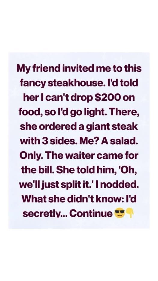 Before saying yes, I hesitated. I told her plainly that a lavish night out wasn’t in my budget. I could join for the company, order something modest, but spending hundreds of dollars on a meal was impossible.