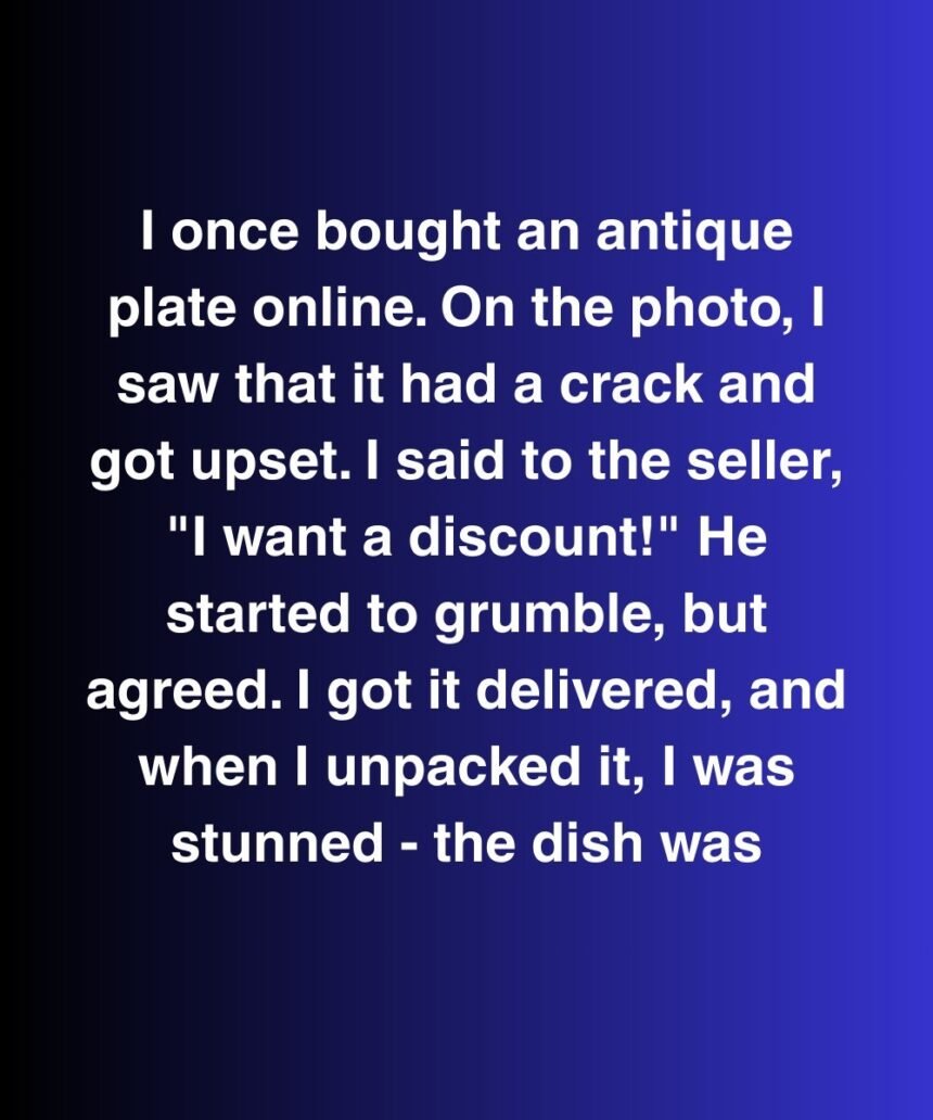 I once bought an antique plate online. On the photo, I saw that it had a crack and got upset. I said to the seller, “I want a discount!” He started to grumble, but agreed.